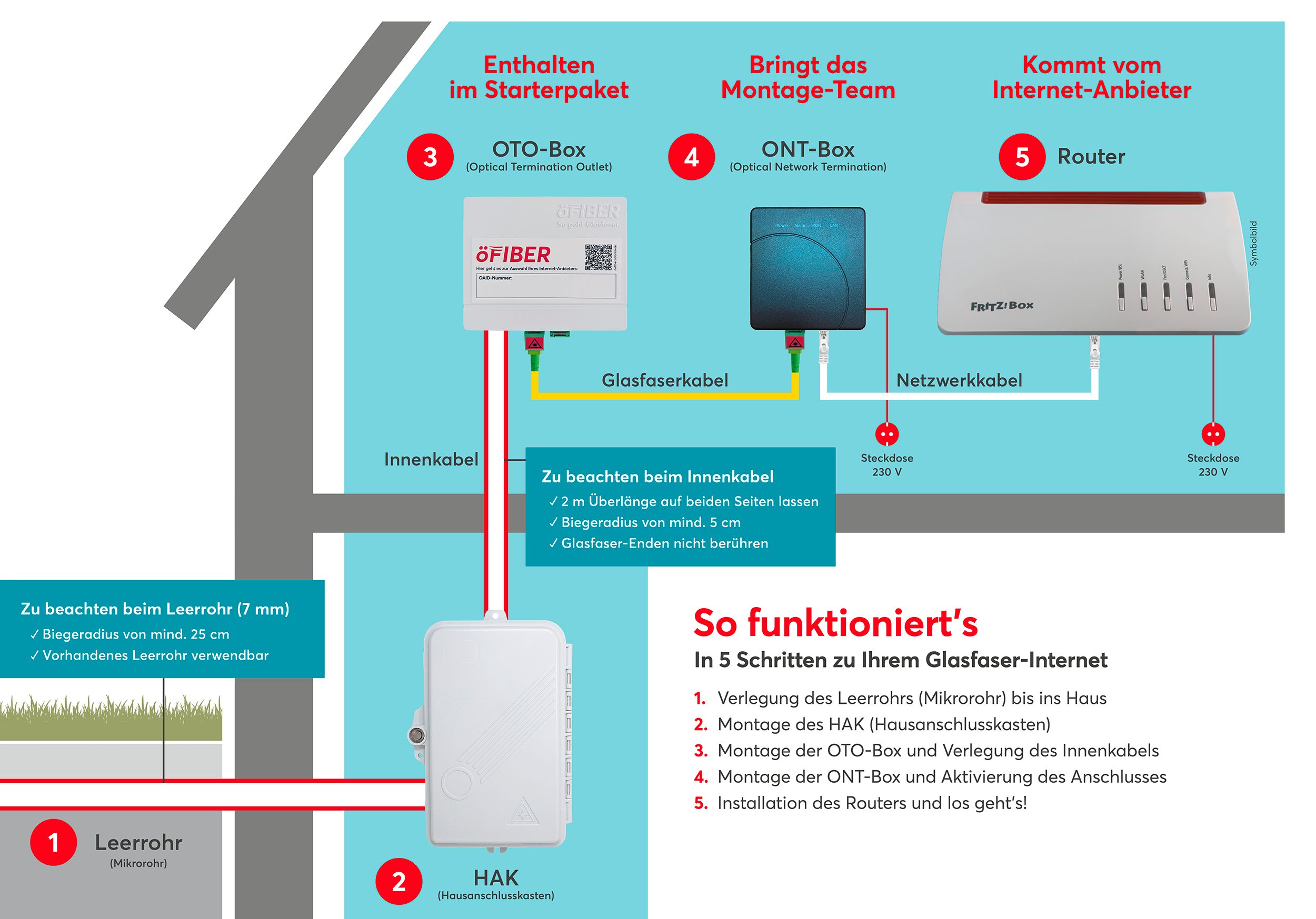 Internettarif aus über 20 Anbieter im öFIBER Netz wählen, Router an die ONT-Box anschließen und mit Lichtgeschwindigkeit lossurfen!