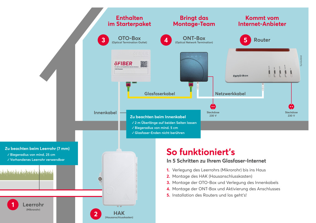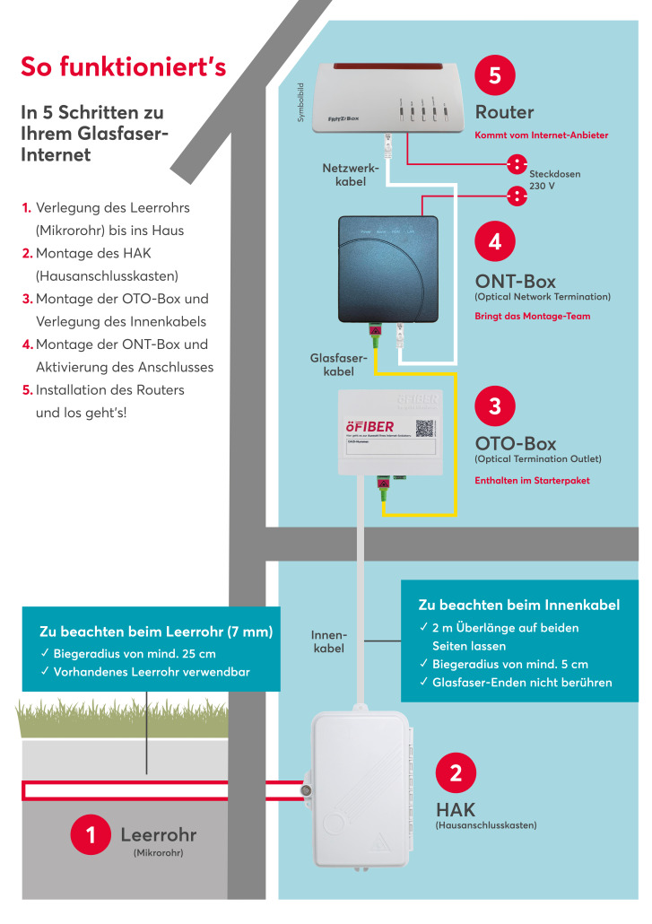 Internettarif aus über 20 Anbieter im öFIBER Netz wählen, Router an die ONT-Box anschließen und mit Lichtgeschwindigkeit lossurfen!